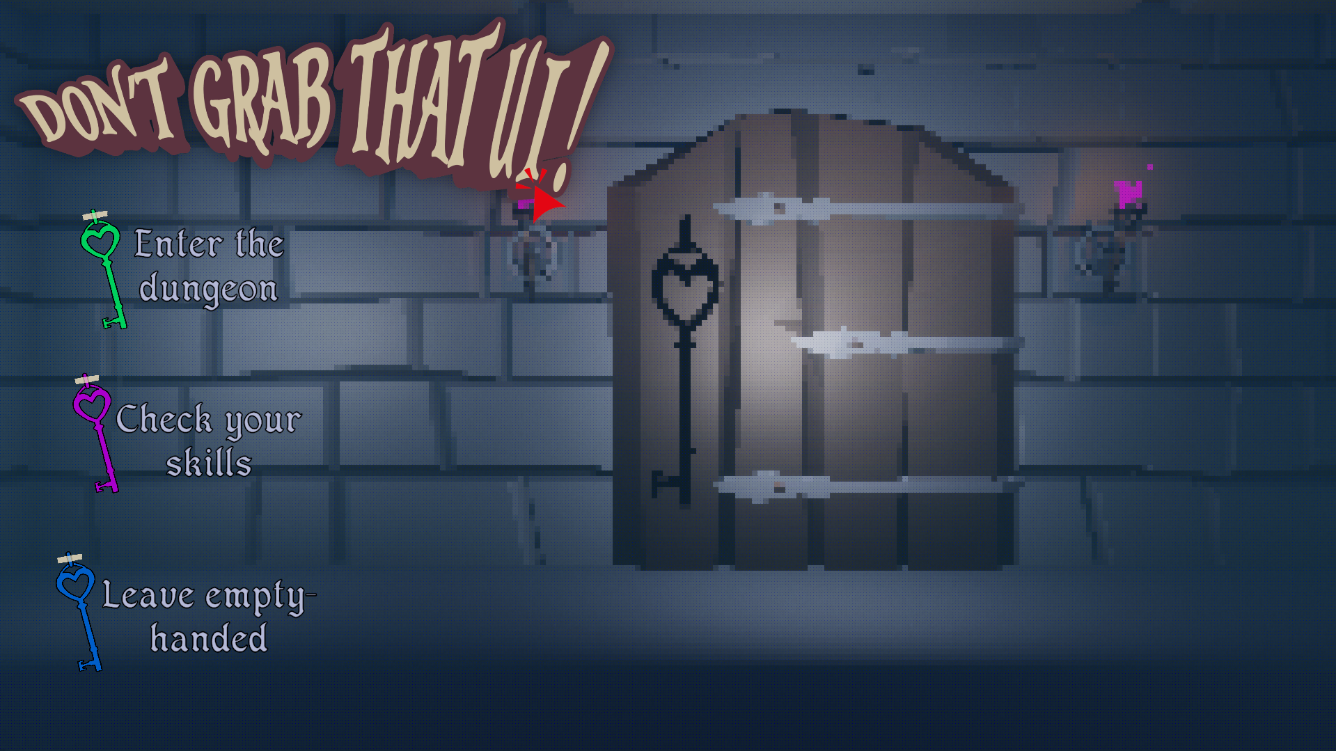 Don't grab that UI est un court dungeon crawler ou vous explorez un donjon en quête d'un trésor en vous aidant des interfaces utilisateurs présentent sur son écran.